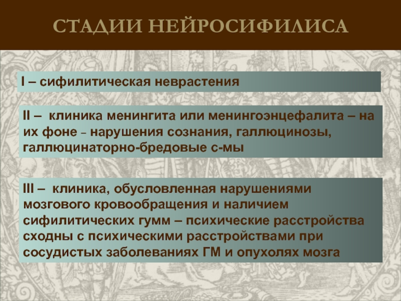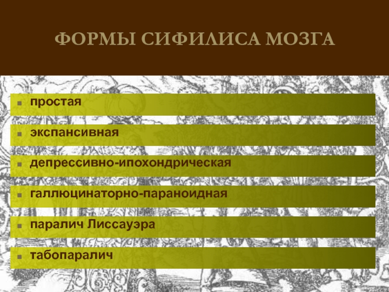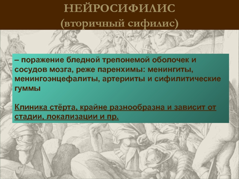 – поражение бледной трепонемой вещества головного мозга (диффузный менингоэнцефалит )