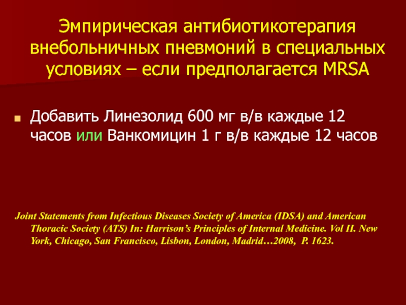 Если возникла необходимость в применении макролидов, карбапенемов, фторхинолонов или ванкомицина