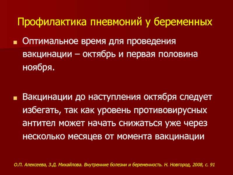 О.П. Алексеева, З.Д. Михайлова. Внутренние болезни и беременность. Н. Новгород, 2008, с. 91