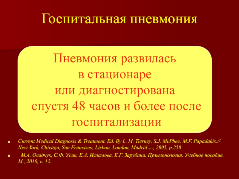 М.А. Осадчук, С.Ф. Усик, Е.А. Исламова, Е.Г. Зарубина. Пульмонология. Учебное пособие. М., 2010, с. 12.