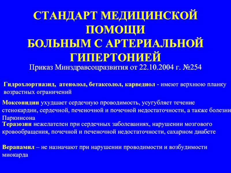 Моксонидин ухудшает сердечную проводимость, усугубляет течение стенокардии, сердечной, печеночной и почечной недостаточности, а также болезни Паркинсона