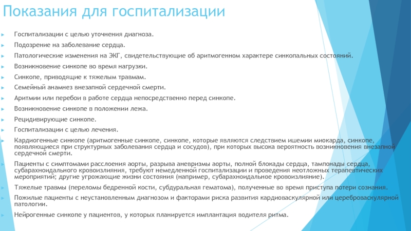 заболеваний, вызвавших синкопе.