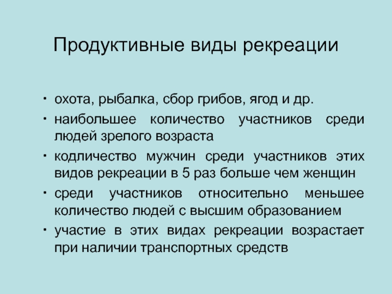 участие в этих видах рекреации возрастает при наличии транспортных средств