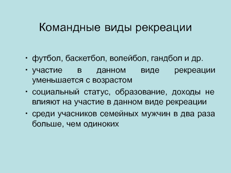 в некоторых видах спорта и др.) или по большей части женщины (рукоделие, цветоводство и др.). Женщины также в большей степени ценят досуг как средство общения, предпочитают ходить в гости, беседовать с близкими и знакомыми и т.п.