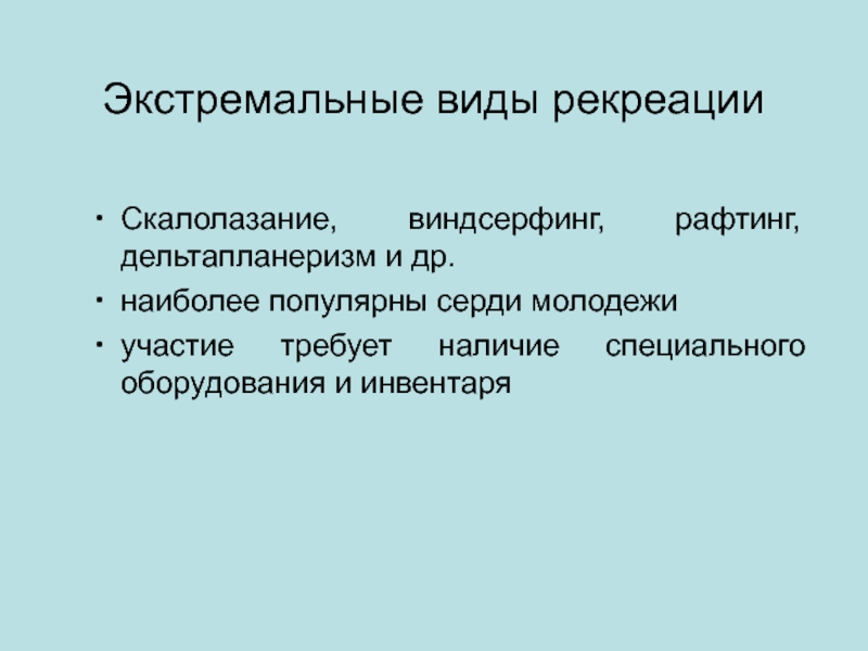 Скалолазание, виндсерфинг, рафтинг, дельтапланеризм и др.