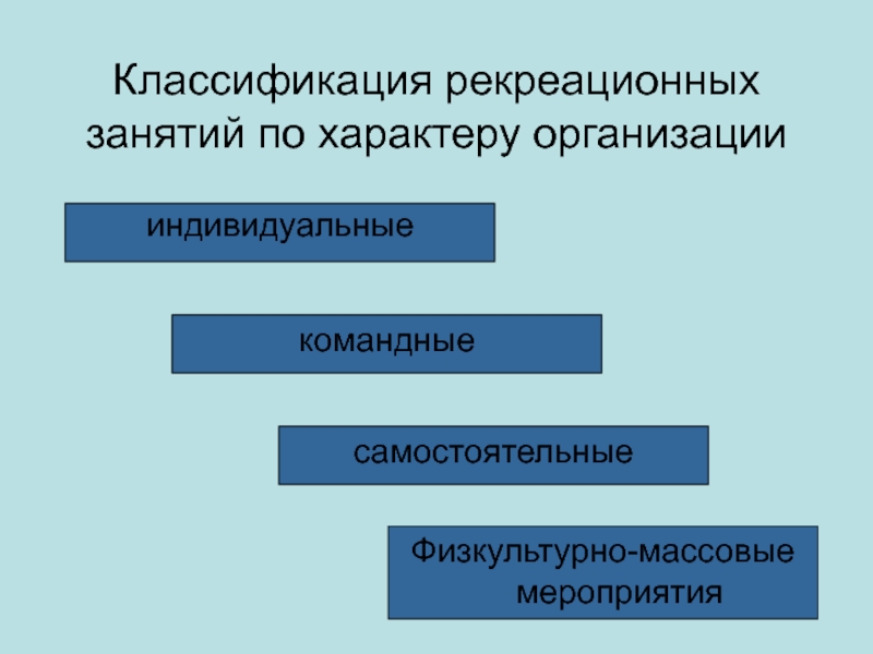 Слайд 57Классификация рекреационных занятий по характеру организации