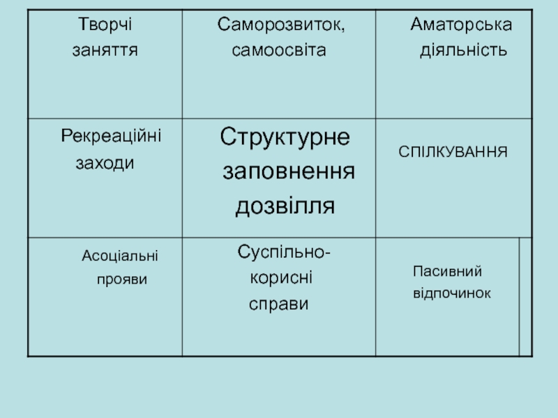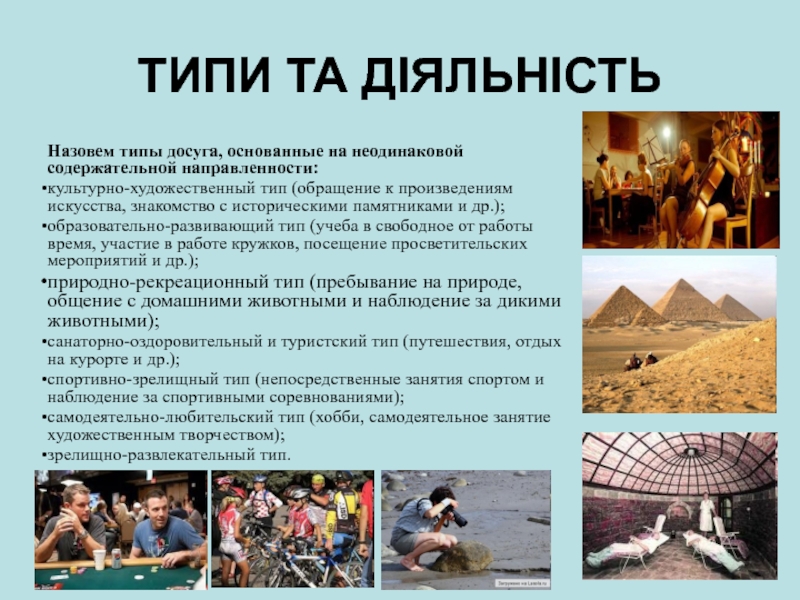 6. Класифікація видів рекреаційно-дозвіллєвих занять.