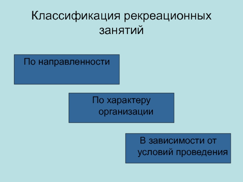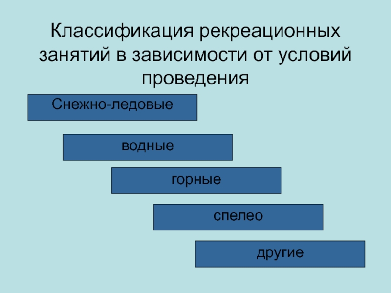 Слайд 58Классификация рекреационных занятий в зависимости от условий проведения