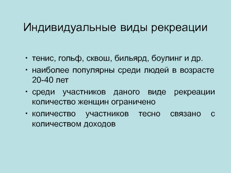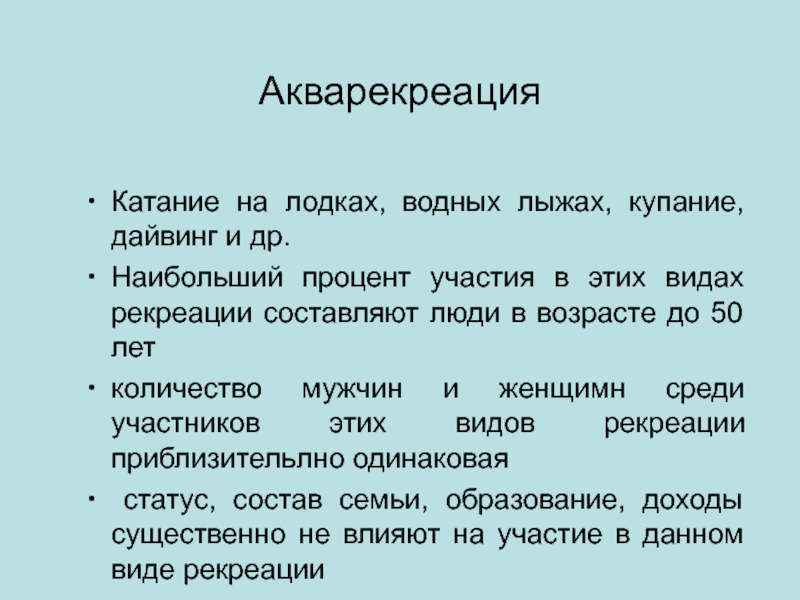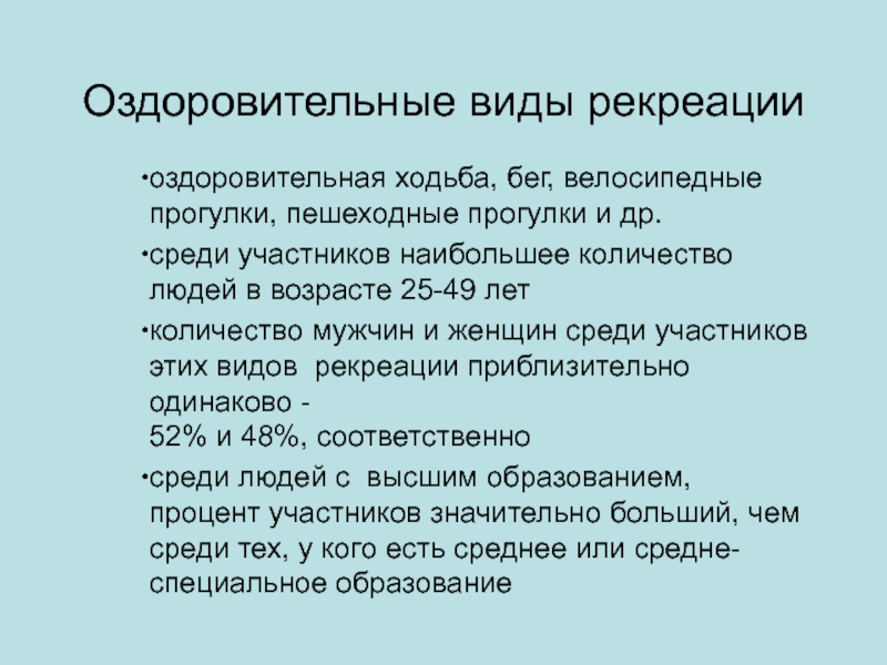 участия в этих видах рекреации составляют люди в возрасте до 50 лет