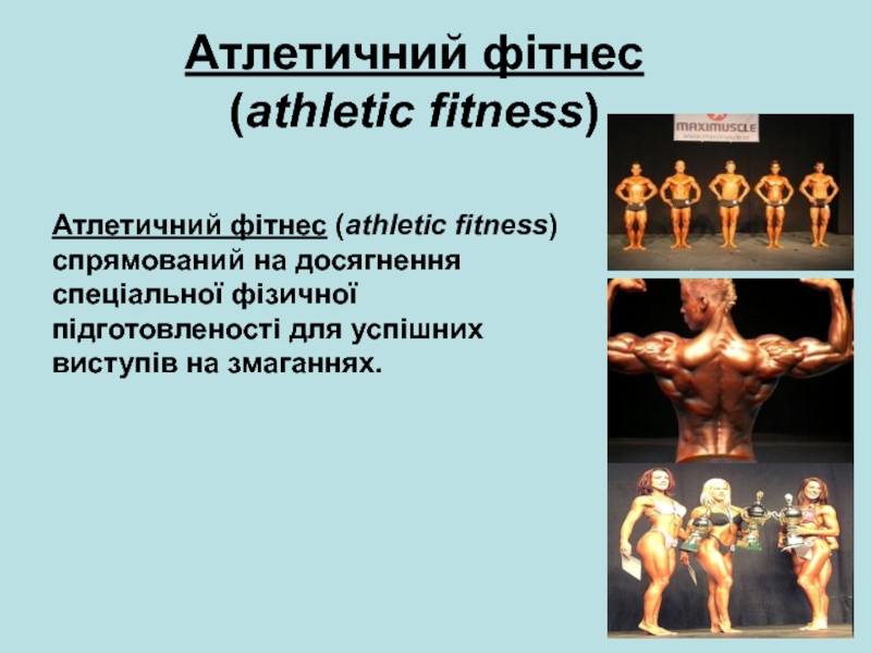 Атлетичний фітнес (athletic fitness) спрямований на досягнення спеціальної