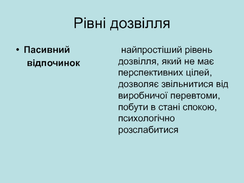 час, витрачати його на заняття, які не пов'язані із дозвіллям. Однак, ці можливості не безмежні. Коли виробнича праця або різноманітні побутові справи виходять за раціональні межі, людина суттєво обмежує свій вільний час, що може викликати стрес через перевтому. А люди, які проводять вільний час у себе вдома в пасивній бездіяльності, стримують свій розвиток, їх існування стає одноманітним.