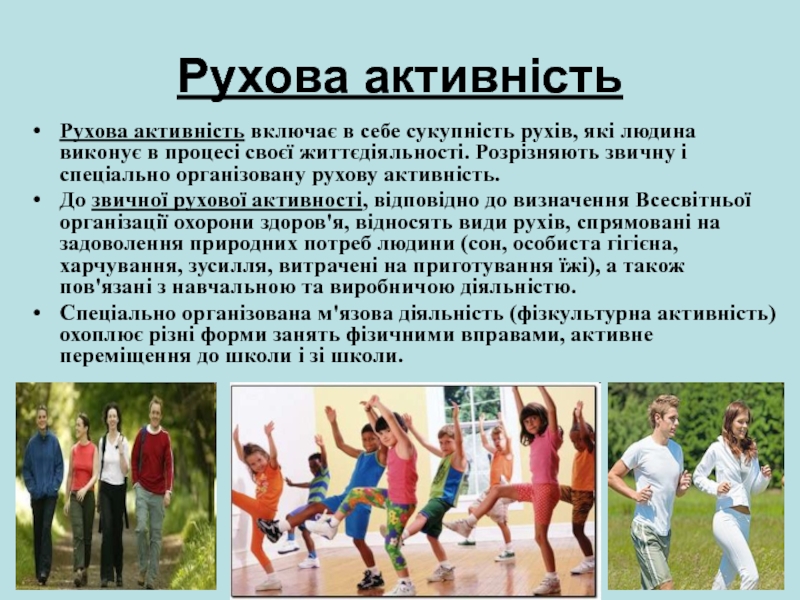 Рухова активність включає в себе сукупність рухів, які людина виконує