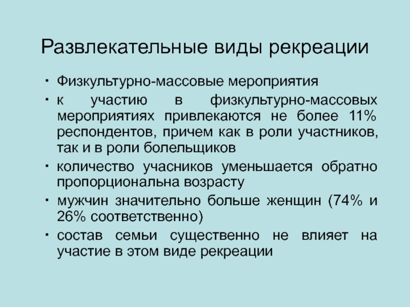 кодличество мужчин среди участников этих видов рекреации в 5 раз больше чем женщин