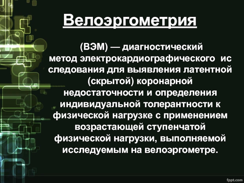 (ВЭМ) — диагностический метод электрокардиографического исследования для выявления латентной (скрытой) коронарной недостаточности и определения индивидуальной