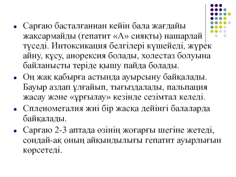 Сарғаю басталғаннан кейін бала жағдайы жақсармайды (гепатит «А» сияқты) нашарлай түседі.