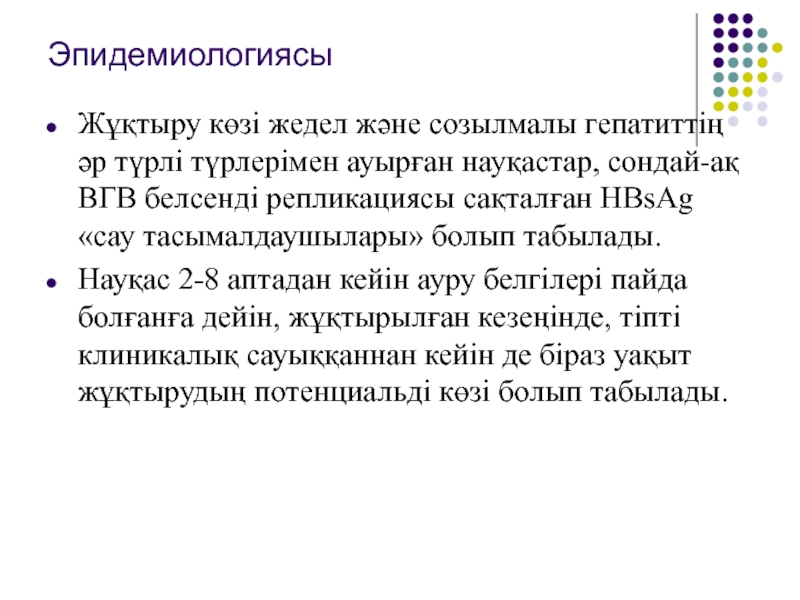 парентеральды жұғу жолы бар бауыр зақымдалуымен сипатталатын клинико-зертханалық белгілері