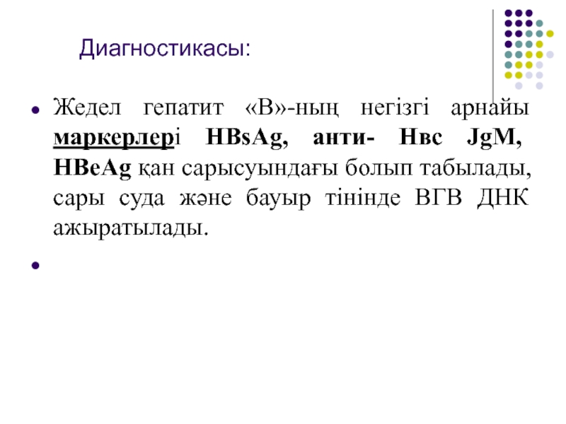 вирусты гепатиттер «В», «Д», «С» маркерлі диагностикасы;