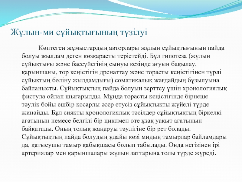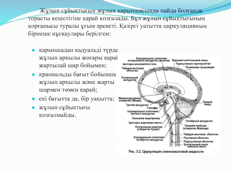 Слайд 9 Жұлын сұйықтығын жұлын қарыншасында пайда болғанда торасты кеңістігіне қарай қозғалады. Бұл