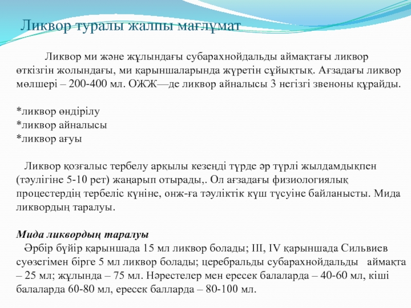 Слайд 6Ликвор туралы жалпы мағлұмат