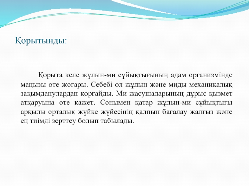 Қорыта келе жұлын-ми сұйықтығының адам организмінде маңызы өте жоғары. Себебі ол