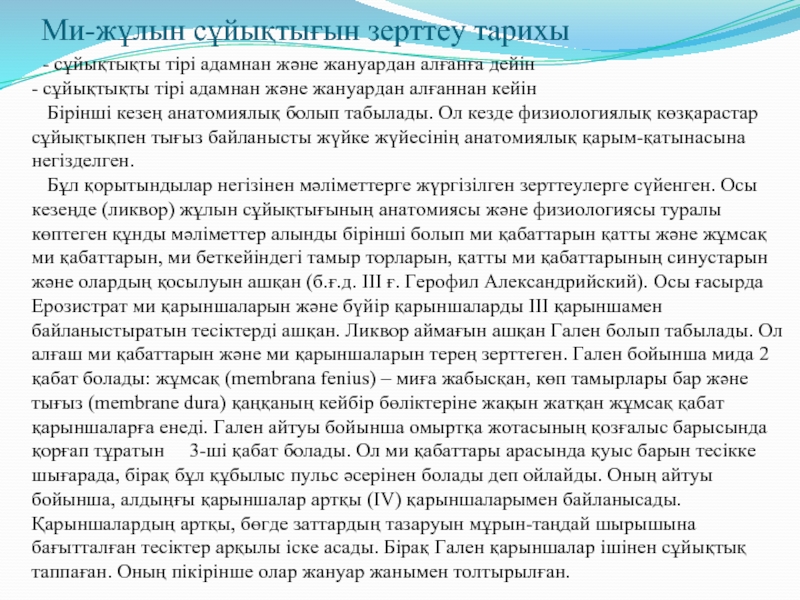 Слайд 4Ми-жұлын сұйықтығын зерттеу тарихы