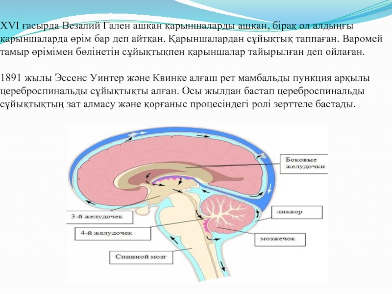 Слайд 5ХVІ ғасырда Везалий Гален ашқан қарыншаларды ашқан, бірақ ол алдыңғы қарыншаларда