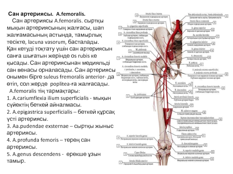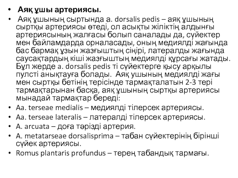 Слайд 2ішкі және сыртқы мықын артериялары. Тақым артериясы. Сирақ және аяқ басы