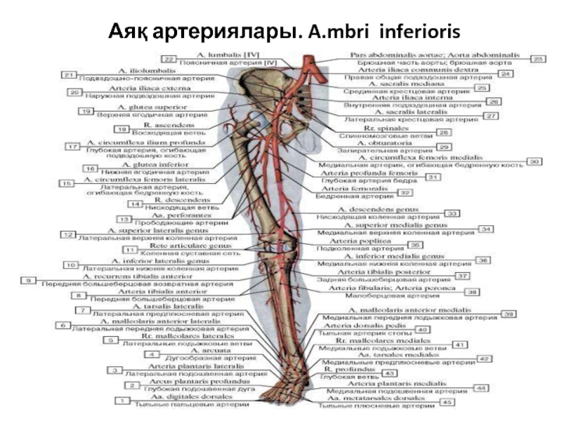 Слайд 7 Аяқ артериялары. A.mbri inferioris
