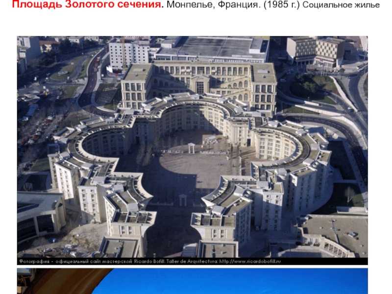 Слайд 13Площадь Золотого сечения. Монпелье, Франция. (1985 г.) Социальное жилье