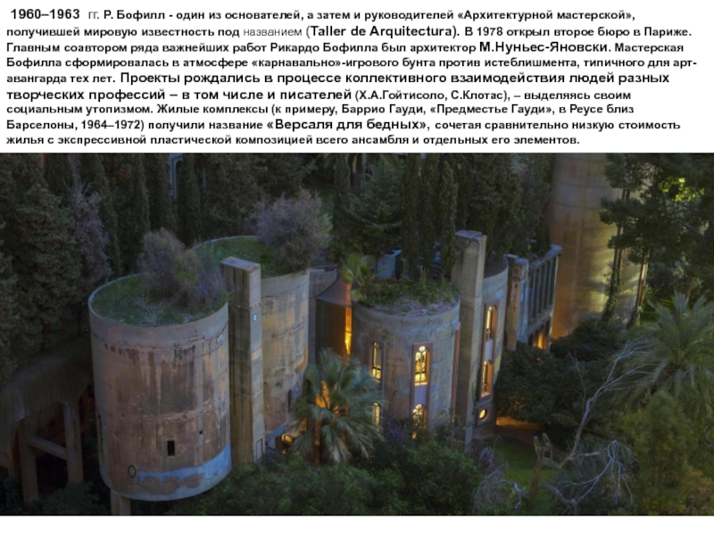 Слайд 20 1960–1963 гг. Р. Бофилл - один из основателей, а затем и руководителей
