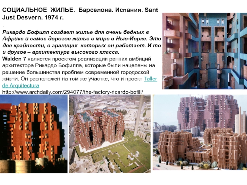 Слайд 21СОЦИАЛЬНОЕ ЖИЛЬЕ. Барселона. Испания. Sant Just Desvern. 1974 г.