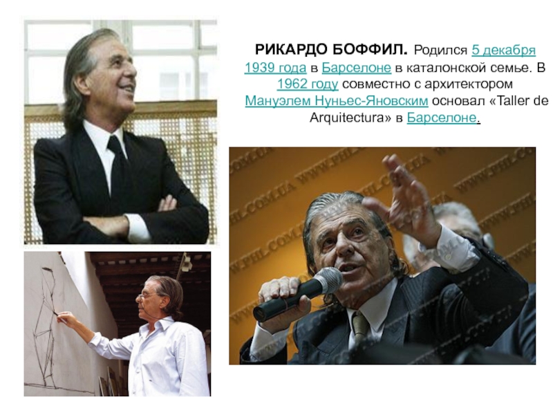 Слайд 4РИКАРДО БОФФИЛ. Родился 5 декабря 1939 года в Барселоне в каталонской