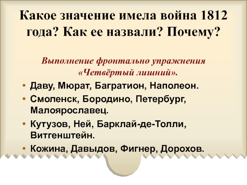 Кутузов, Ней, Барклай-де-Толли, Витгенштейн.