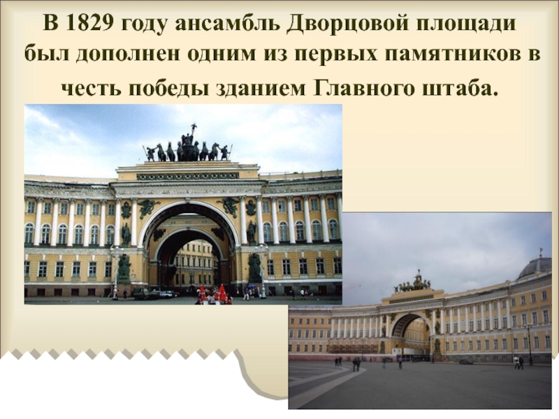 Слайд 6В 1829 году ансамбль Дворцовой площади был дополнен одним из первых