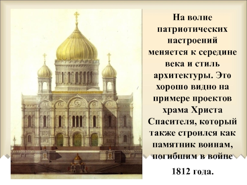 Слайд 11На волне патриотических настроений меняется к середине века и стиль архитектуры.