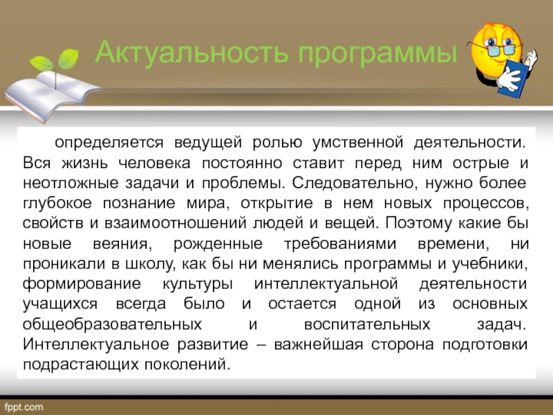 определяется ведущей ролью умственной деятельности. Вся жизнь человека постоянно ставит