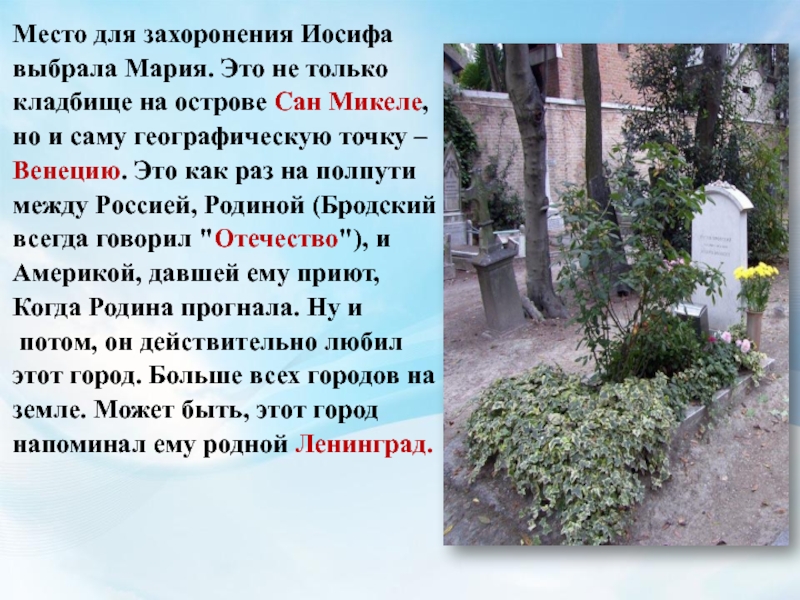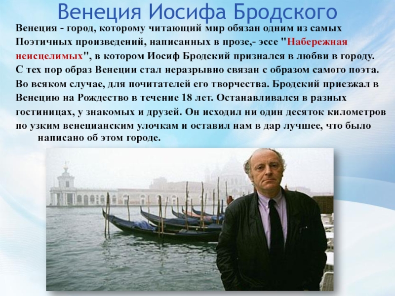 С тех пор образ Венеции стал неразрывно связан с образом самого поэта.