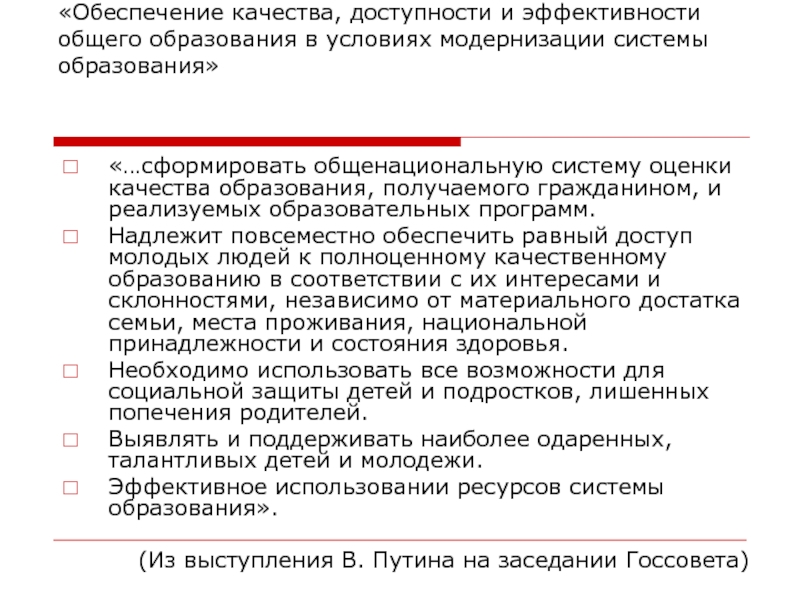 «…сформировать общенациональную систему оценки качества образования, получаемого гражданином, и реализуемых образовательных программ.