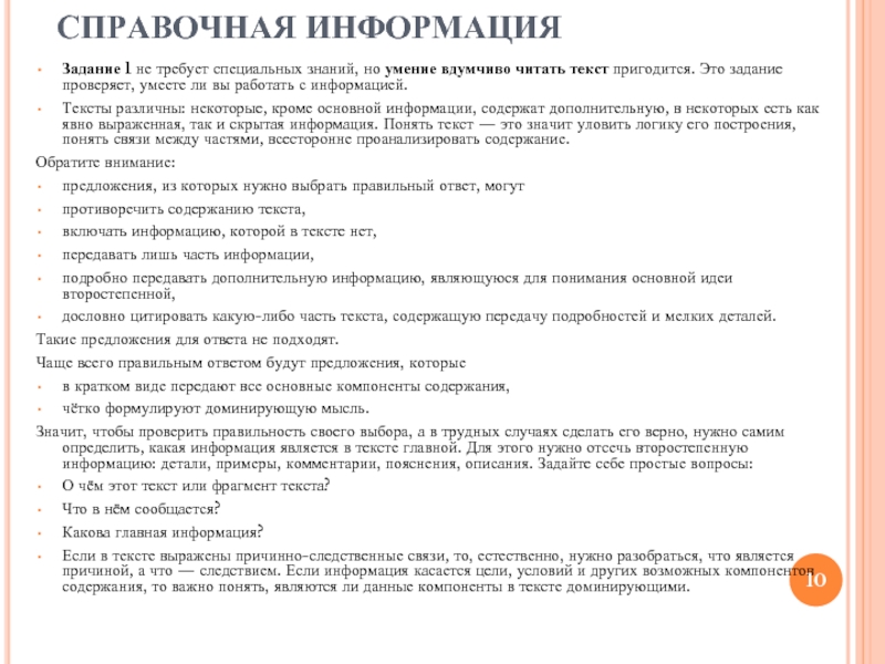 Слайд 10СПРАВОЧНАЯ ИНФОРМАЦИЯ