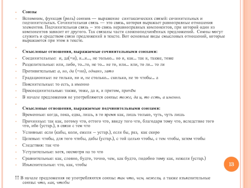 Вспомним, функция (роль) союзов — выражение синтаксических связей: сочинительных и подчинительных.