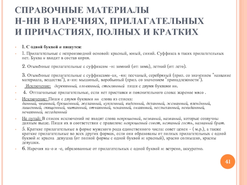Н-НН В НАРЕЧИЯХ, ПРИЛАГАТЕЛЬНЫХ И ПРИЧАСТИЯХ, ПОЛНЫХ И КРАТКИХ