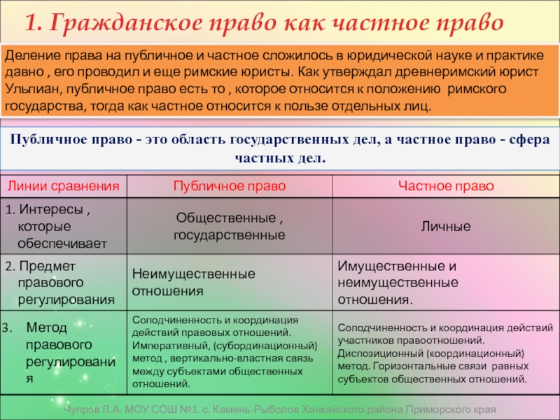 Публичное право - это область государственных дел, а частное право - сфера частных дел.