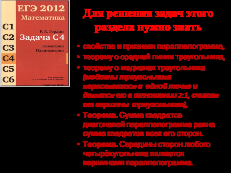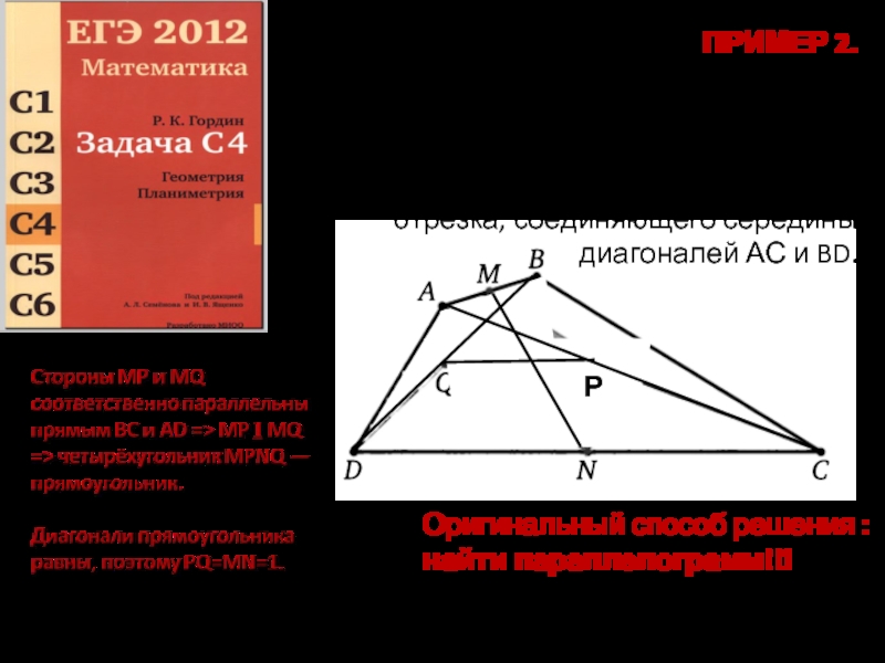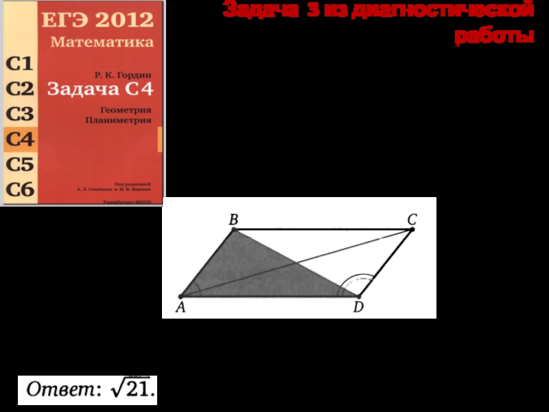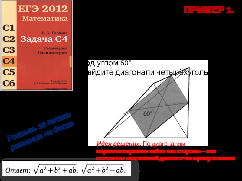 Идея решения. По диагоналям параллелограмма найти его стороны – это половины диагоналей данного четырехугольника
