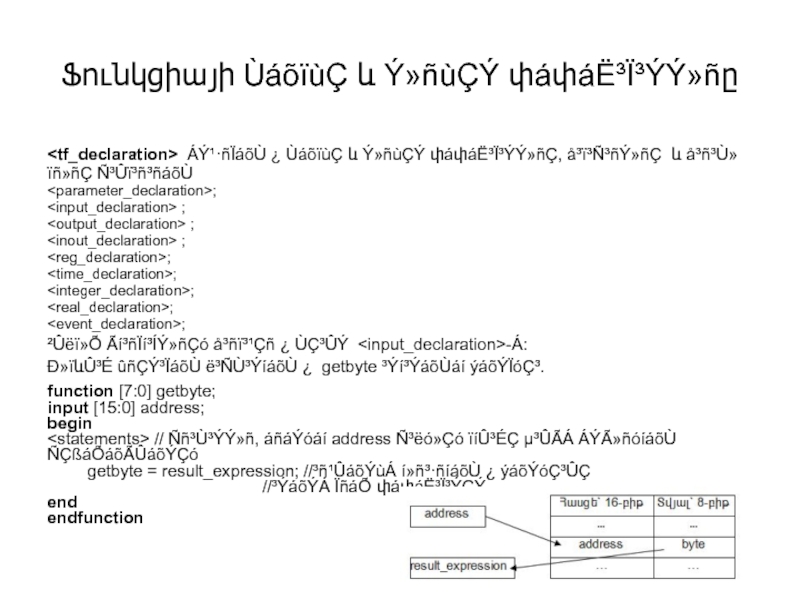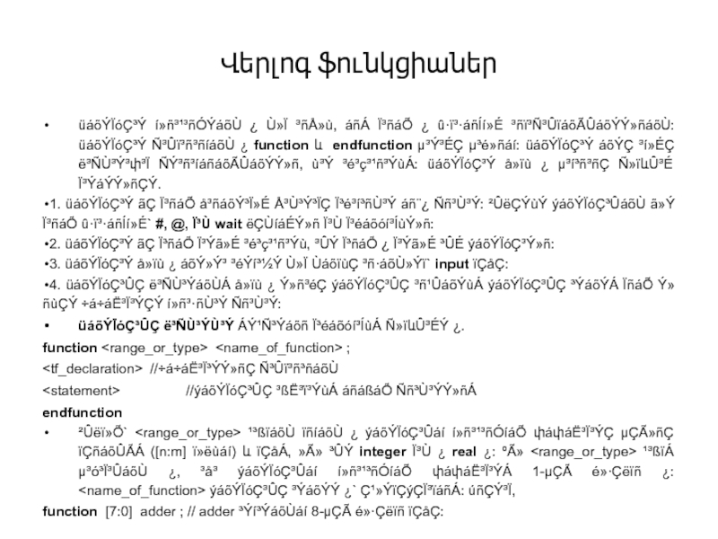 üáõÝÏóÇ³Ý Ñ³Ûï³ñ³ñíáõÙ ¿ function և endfunction µ³Ý³ÉÇ µ³é»ñáí: üáõÝÏóÇ³Ý áõÝÇ ³í»ÉÇ ë³Ñٳݳփ³Ï Ñݳñ³íáñáõÃÛáõÝÝ»ñ, ù³Ý ³é³ç³¹ñ³ÝùÁ: üáõÝÏóÇ³Ý å»ïù ¿ µ³í³ñ³ñÇ Ñ»ïևÛ³É Ï³ÝáÝÝ»ñÇÝ.