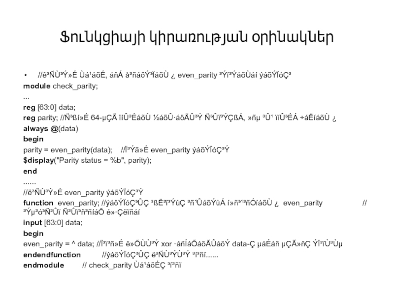 function even_parity; //ýáõÝÏódzÛÇ ³ß˳ï³ÝùÇ ³ñ¹ÛáõÝùÁ í»ñ³¹³ñÓíáõÙ ¿ even_parity // ³Ýµ³ó³Ñ³Ûï ѳÛï³ñ³ñíáÕ é»·Çëïñáí