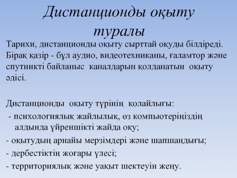Слайд 10Дистанционды оқыту туралы