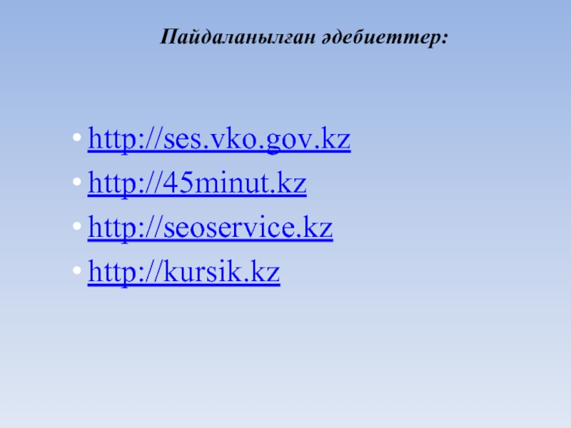 Слайд 15Пайдаланылған әдебиеттер: