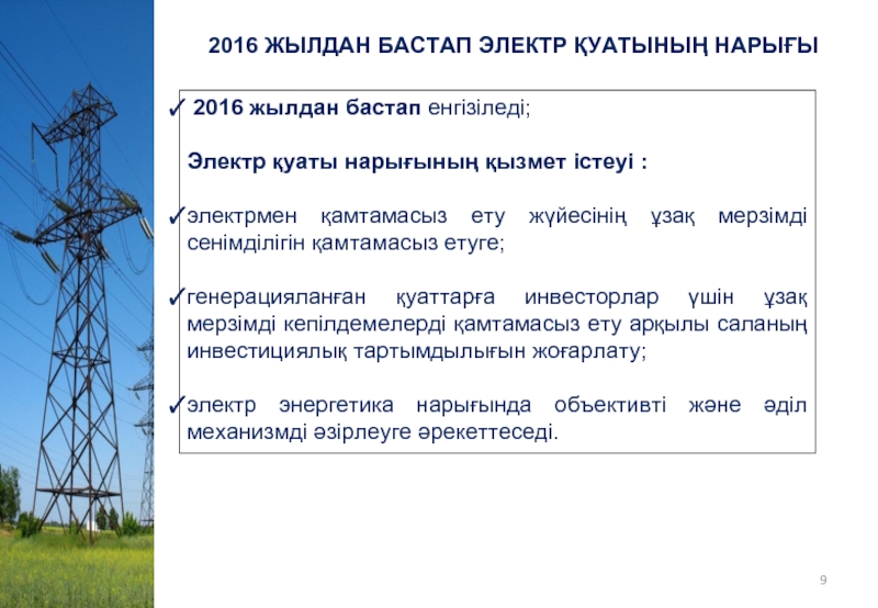 2016 ЖЫЛДАН БАСТАП ЭЛЕКТР ҚУАТЫНЫҢ НАРЫҒЫ