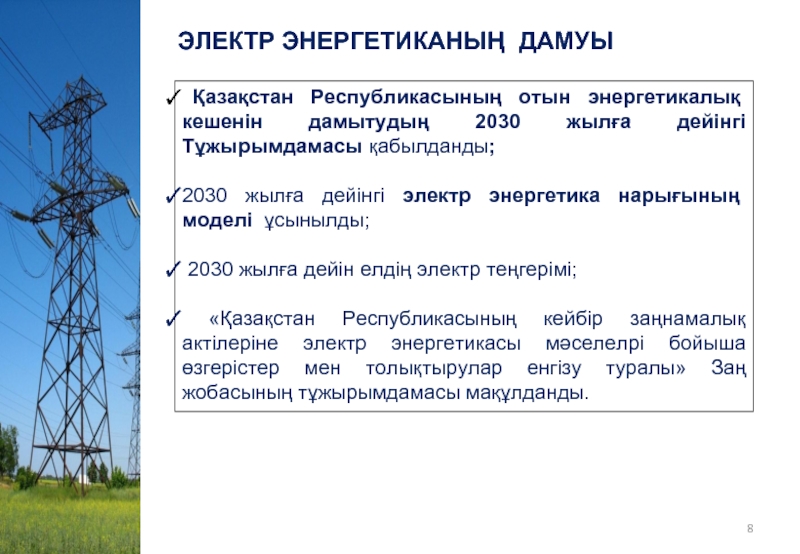 Слайд 9ЭЛЕКТР ЭНЕРГЕТИКАНЫҢ ДАМУЫ
