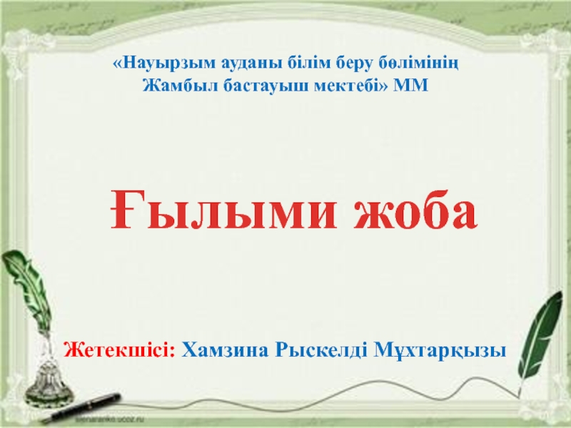 Тақырыпты талдау, материалдар жинау, ізденіс жұмыстарын жүргізу, ғылыми жетекшімен байланыстыру.